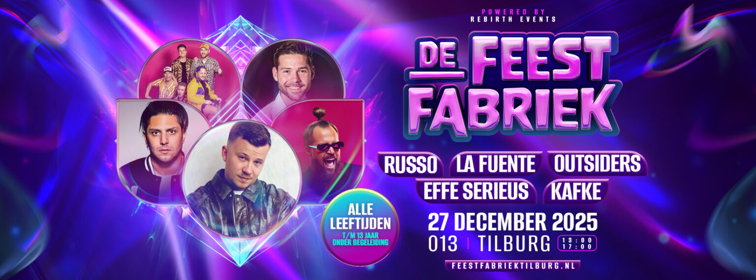 Kaarten voor De Feestfabriek zijn te koop op: feestfabriektilburg.nl